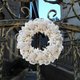 Completely handmade wreath, with a variety of different characteristics of fabrics (proembryo knitted fabric / felt / PU leather / cotton lace / lace / wool), various white (white / off-white / pearl white / ivory) and imitation pearls and other beads make this cute little wreath of flowers!