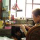 Even old joy to wear glasses, eyes narrowed to a minimum,
