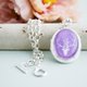 Lilac Deer Photo Locket Necklace, Silver Rolo Chain Vintage Style Handmade Jewelry, Strength-Peace Inspirational Wearable Art Locket Pendant