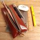 Pencil case - Flat - สีแทน (Genuine Cow Leather) / Pen case / Leather case / Accessories case