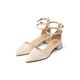 - Crafted from woven rattan, these summer sandals exude a distinct seasonal charm. The relaxed feel of the woven material beautifully complements the youthful allure of the pointed toe, instantly infusing your look with a vibrant and cheerful energy. The dual ankle straps add a subtle, thoughtful detail to the otherwise minimalist design, offering effortless versatility for various styling preferences.