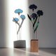 Blue Glass Flowers Carnations on a Wooden Stand - ของวางตกแต่ง - แก้ว สีน้ำเงิน