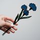 Stained glass bouquet of blue carnations for table decoration. Mounted on an oak base. You can arrange the flowers as you wish. An excellent gift for your loved ones. For maximum effect, it is better to place flowers in a place where sunlight will pass through them. The size with the stand is 26*6*4 cm.