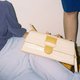 - Original design top layer cowhide cream color crocodile embossed collision with American calfskin baguette bag
