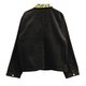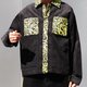 orduroy work jacket with colorful Nigerian African fabric on collar, front and pocket.