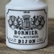 - This vintage Bornier Dijon mustard jar is a French culinary classic, crafted from smooth, porcelain-like milk glass; it features the brand’s heritage graphics since 1816 and retains its original red lid with a signature spoon-hole design; hailing from Dijon, the historic "Mustard Capital" of France, this piece brings a romantic Burgundian charm to your home.