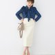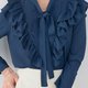 Blouse Frilled bowtie 9-quarter sleeve / Liala x PG - เสื้อเชิ้ตผู้หญิง - ผ้าฝ้าย/ผ้าลินิน สีน้ำเงิน