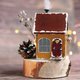 Christmas village house. Small wooden house. Merry christmas gift. Cabin decor