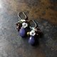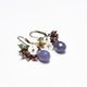 - Sapphire agate and garnet, white butterfly florets, moss agate, small folk bell earrings