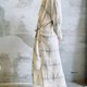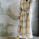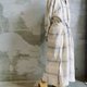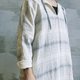 Featuring a blue electrocardiogram weave and undyed white pure cotton double gauze, this loose, long-sleeved dress exudes an ethereal charm. The tie can be fastened at the front, back, all the way around, or left undone.