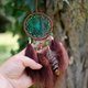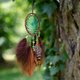 Add a little color to your world with this small green and natural brown dreamcatcher car charm. Beautiful accent for your car. Looks pretty on rear view mirror in the car as car charm.