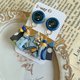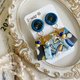 - Deep navy, like the night sky, with delicate light and shadow hidden within the button. The pleats at the hem resemble a little blue dress, with dangling beads and daisies swaying quietly and gently.