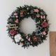 - A Christmas wreath with a preserved cedar base, adorned with small berries and other decorative elements. Can be preserved for 1-2 years in a dry environment.