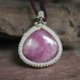 We have simply finished this high-quality sapphire piece into a macrame necklace.