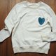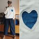 The heart graphic on the chest is crafted from hand-woven fabric with natural dye appliqué.