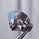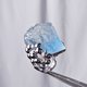 The designer has meticulously selected raw **blue fluorite** from the **rarest** of the **Fluorite** family. The gemstone is a deep, icy blue, with a **white and blue gradient**, reminiscent of the **snow-capped peaks of a majestic mountain**, a miniature landscape of a snow-capped mountain.