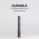 - made in China Warranty: None Material: aerospace grade aluminum alloy Size: (L) 17.78㎝ X (W) 1.78㎝ X (H) 10.8㎝ Weight: 45g Contents: flashlight x1, 1 AA battery, steel pocket clip