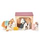 - This working stable is perfect for grooming the ponies, with a brush, and 2 blankets. Feed the ponies with a bale of hay and a nose bag. Keep it all neat and tidy with the bucket, spade and broom, which can be hung up on some hooks on the inside wall.