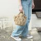 - The small bag is more secure with a drawstring The beauty of the weaving can be seen through the black lining A good helper when going out Can be carried on the shoulder