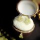 - Prosperity • Helpful Connections • Wealth | Icy Gel Yellow Jade Osmanthus | Burmese A-Grade Jadeite with S925 Sterling Silver Plated with 18k Gold Custom Earrings • Certificate Included • Complimentary S925 Sterling Silver Chain Osmanthus Size: 8.3×3.5mm (one piece) Overall Height: 1.3cm