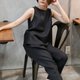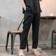 - กางเกงผ้าลินินธรรมชาติ ขาตรง ใส่สบาย - สีดำ