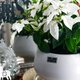 - **Graceful Foliage**: Featuring elegant lines and lively leaves, its beauty is further accentuated by the accompanying white ceramic vase, highlighting its refined character and adding a touch of freshness to your environment.
