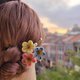 Crafted using traditional tsumami zaiku techniques, it features a tender, pastel macaron color palette.