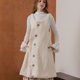 - .Luxuriously soft cashmere fabric .Adorned with Japanese three-dimensional floral buttons, complemented by premium textured fabric and thoughtful design .A back slit elongates the silhouette, while side pockets add a touch of effortless elegance .Versatile enough to be worn as an outerwear piece or a dress