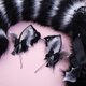 - White Cheshire Cat Ears and Tail set Features: - 2,25 inches tall kitten ears shape - luxury faux fur - crystallized with Preciosa - metal hoops - removable lacy bows with bells - fully wired and posable on the metal headband