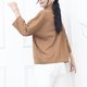 - Mixed-Material Pocket Hem Drawstring Three-Quarter Sleeve Top / Coffee Brown Breathable and comfortable, suitable for spring and summer.