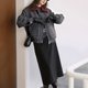 The detachable fur collar, offering both warmth and style, shields against the winter chill and instantly elevates the coat's sophistication.