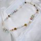 - Mixed-media colorful beaded necklace, featuring unique patterns on each glass bead, crystal bead, and small stone.