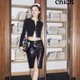 - 64% Rayon 26% Nylon 10% Spandex Rayon Matte Black Sequined Rayon Micro-Elastic Evening Fabric 100% Polyester Black Mercerized Jacquard Lining Fabric Black Invisible Zipper