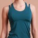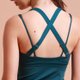 - wide strap with support, cross over strap holds the breast better than other styles, moisture wicking, soft feel fabric,