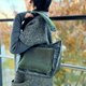 This shoulder bag features eye-catching voluminous olive boa accents on the pockets and strap.