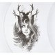 The crescent moon is painted with latex paint and engraved in the form of a witch and horned god Cernunos.