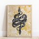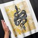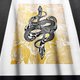 Crafted with meticulous attention to detail, this unframed Lino Print showcases a stunning black and gold floral reptile design. The intertwining elements of the snake and the magnolia flowers create a harmonious and captivating composition that exudes elegance and sophistication.