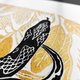 Unleash your sense of adventure and embrace the fusion of nature and mystique with this captivating 16x12 Reptile Original artwork. Explore the power of art to inspire, captivate, and elevate your living space with our Black and Gold Floral Snake with Magnolia Flowers Lino Print.