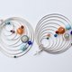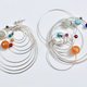 Layered circular sterling silver wires form a sculptural structure, holding natural stone beads that represent planets in motion.