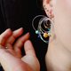 These dangling earrings are inspired by the solar system and the movement of planetary orbits.
