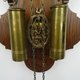 These clocks were very popular in the 1960s. This old pendulum clock chimes beautifully on the half-hour and full hour, with a hammer striking a drum. It operates with a pendulum mechanism and is powered by two brass weights.