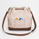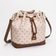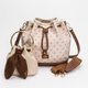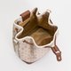 - ◆ Back card slot ◆ Internal slip pocket and zippered interior pocket ◆ Can hold a long wallet and phone ◆ Drawstring and magnetic buckle closure ◆ Comes with a wide woven strap and a pin-buckle strap ◆ Includes a floppy-eared bunny bucket bag charm