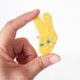 Bring a burst of energy to your outfit with this "Arneb" Bunny Brooch. The body is crafted from translucent polymer clay infused with holograms and glitter, creating a subtle, magical sparkle. It features a hand-drawn botanical leaf pattern in a soft, cheering yellow. For the eyes, I used genuine Sleeping Beauty Turquoise, giving this little rabbit a charming and soulful gaze.