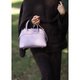The bag's size is moderate, offering both crossbody and handheld versatility,