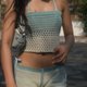ในเซ็ทมี 2 ชิ้น เกาะอกและกางเกงเอวต่ำขาสั้น