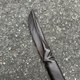 The color will deepen over time, becoming even richer. As this piece was recently completed at the time of photography, it hasn't yet reached its deepest hue. It will naturally mature to be slightly darker than depicted, transforming into a demon blade with a hint of purple iridescence, nearly pure black, subtly revealing a mystical wood grain.