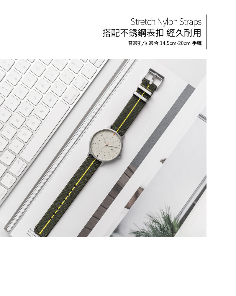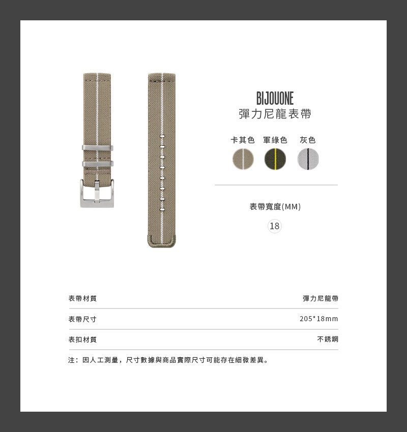 - BIJOUONE stretch nylon watch strap, crafted from stretch nylon, is soft, breathable, and flexible for ultimate wearing comfort. Features quick-release spring bars for tool-free, 10-second strap changes. Enhanced with custom embroidered edge locking and a stainless steel buckle and keeper, elevating the overall refined details.