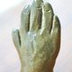 This hand-shaped ceramic piece stretches its fingers gently toward the unknown, cradling a heart at its center — a quiet offering, a lingering prayer.