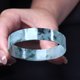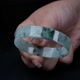 - [Name] Floating Flower Jade Bangle [Size] Circumference 17.5, Inner Diameter 54mm, Width 12.2mm, Thickness 2mm [Origin] Myanmar [Color] White/Green [Notes] Natural Burmese Jadeite Grade A [Item Number] Yingluo Bangle 0455
