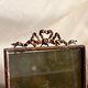 - An elegant and romantic French antique photo frame, adorned with delicate brass bows and ribbon motifs at the top, showcasing fluid lines and an abundance of classical beauty. The twisted rope texture detailing along the edges adds a touch of sophistication. Its rustic brass hue, having withstood the test of time…